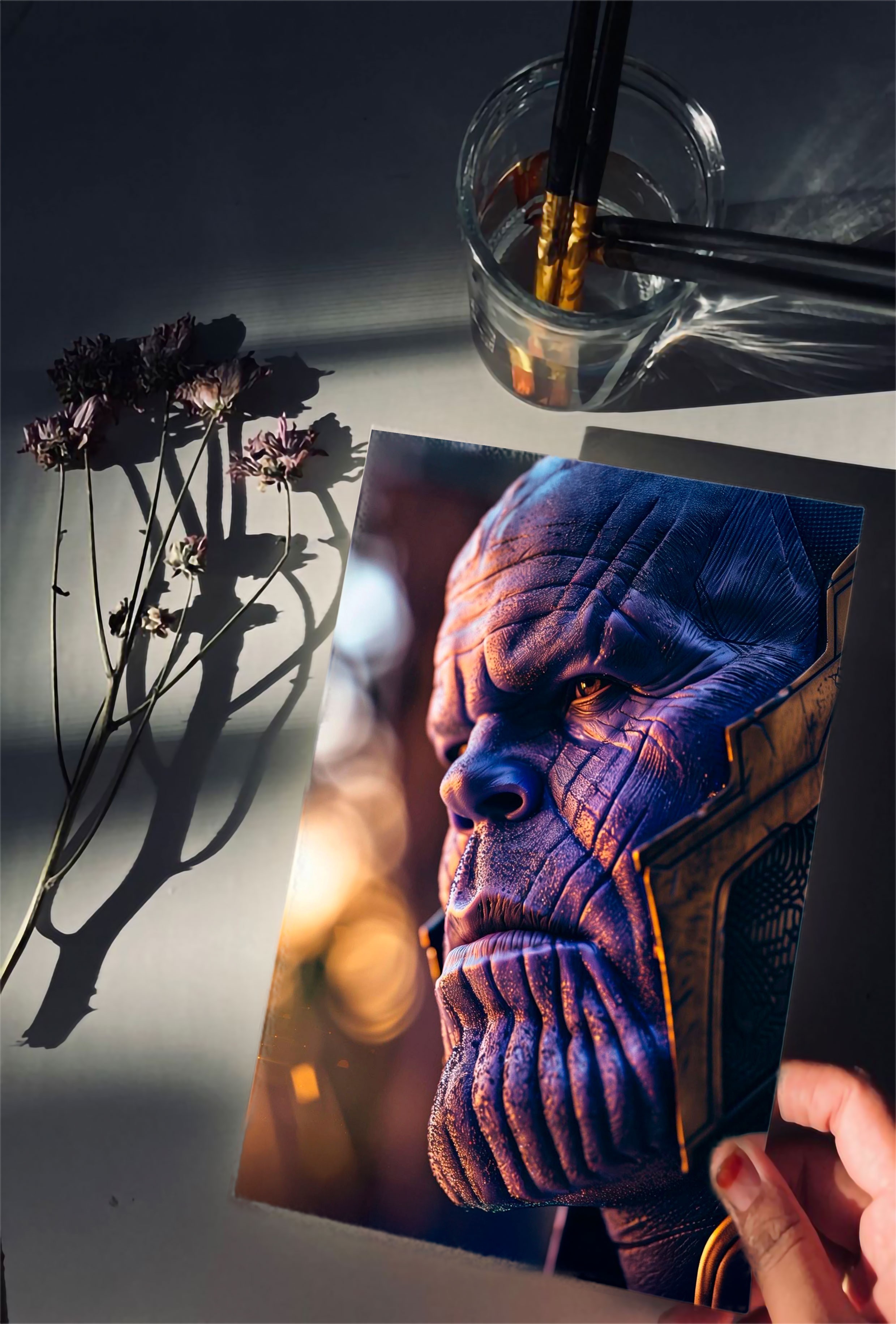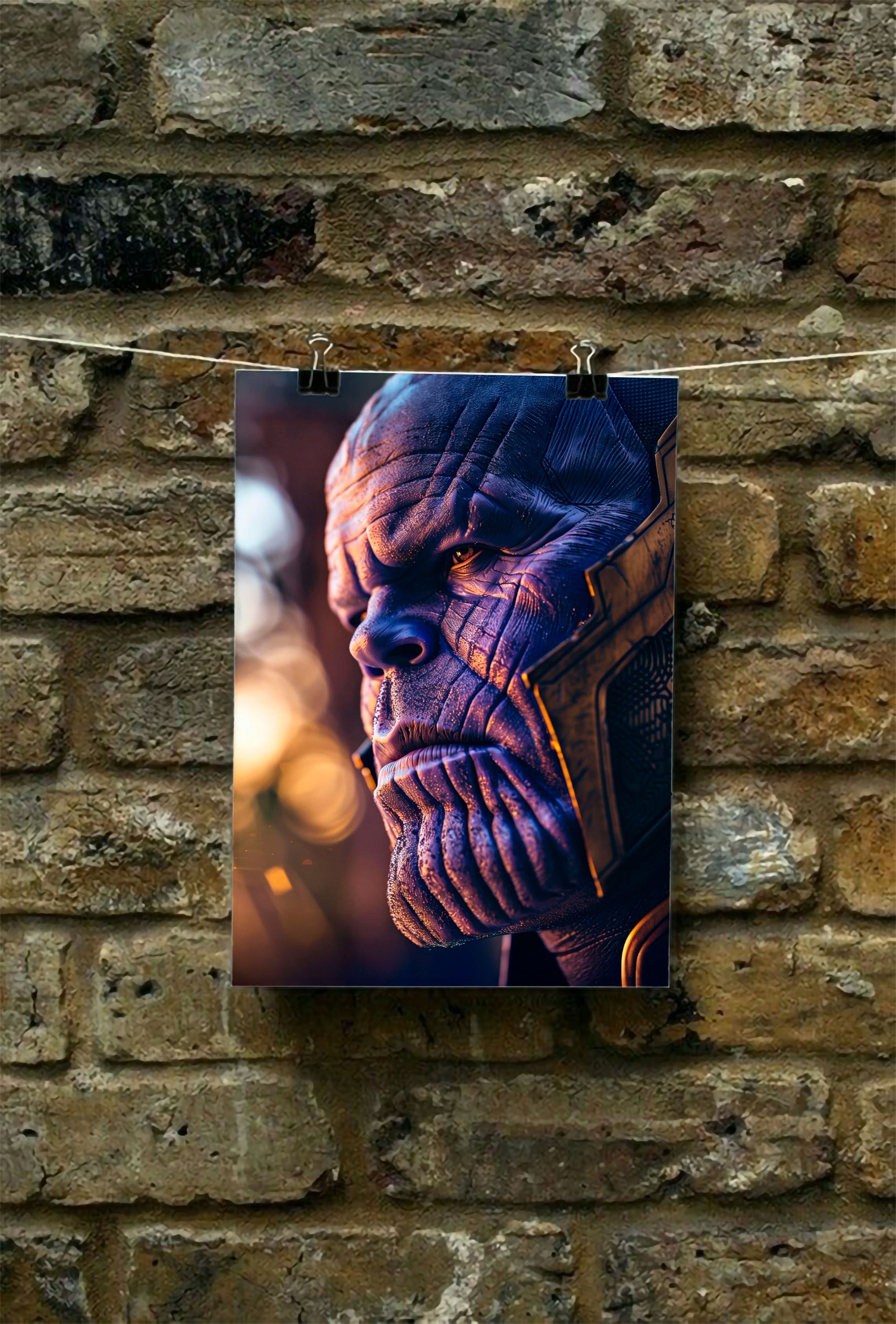 Thanos es uno de los villanos mas emblemáticos del mundo Marvel y puede ser tuyo en este póster Metálico y así puedas apreciar una apariencia mas monstruosa y una fuerza superior
