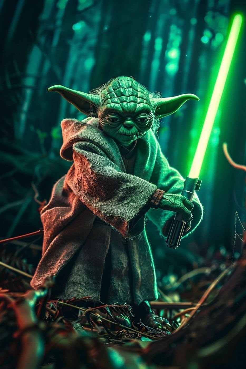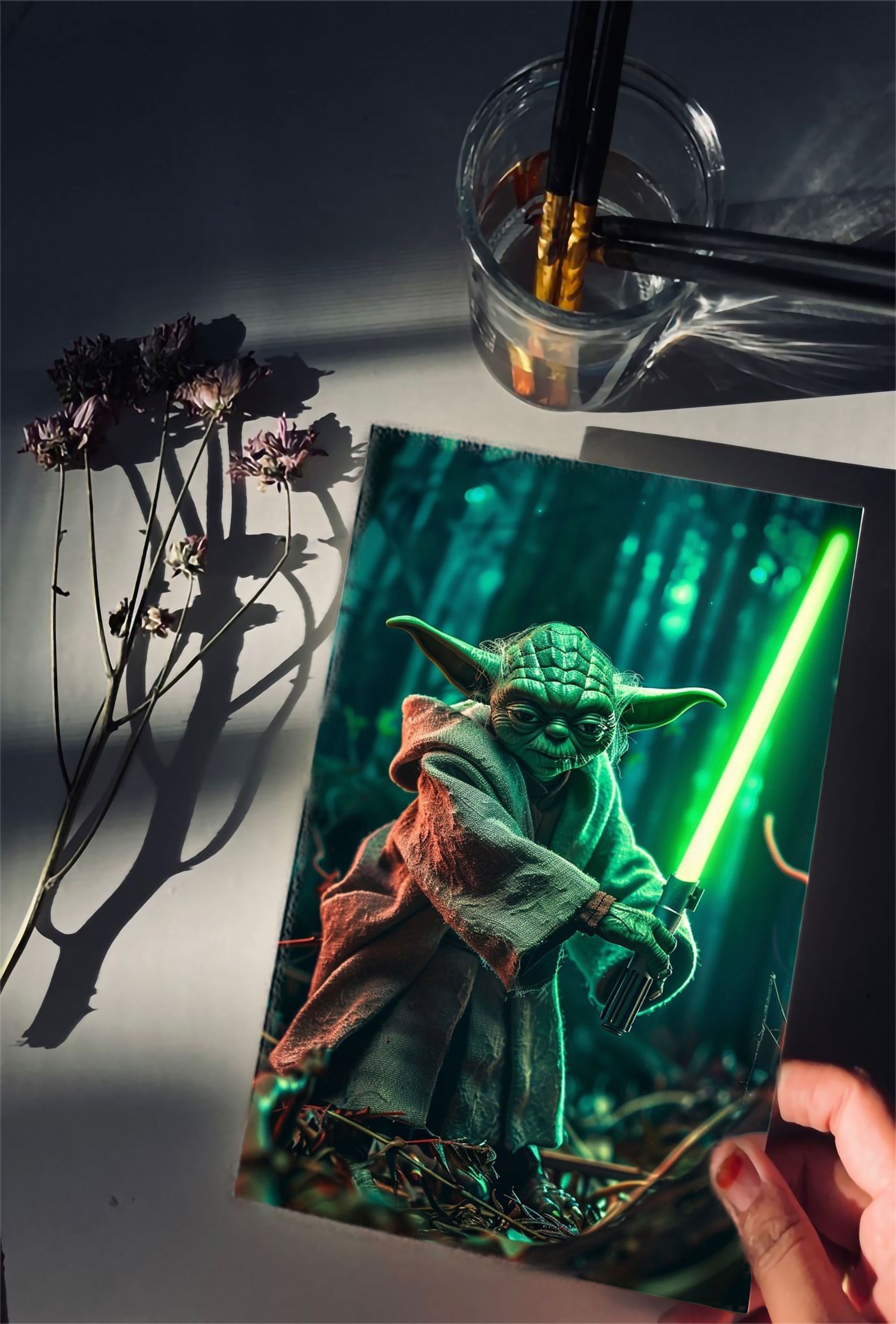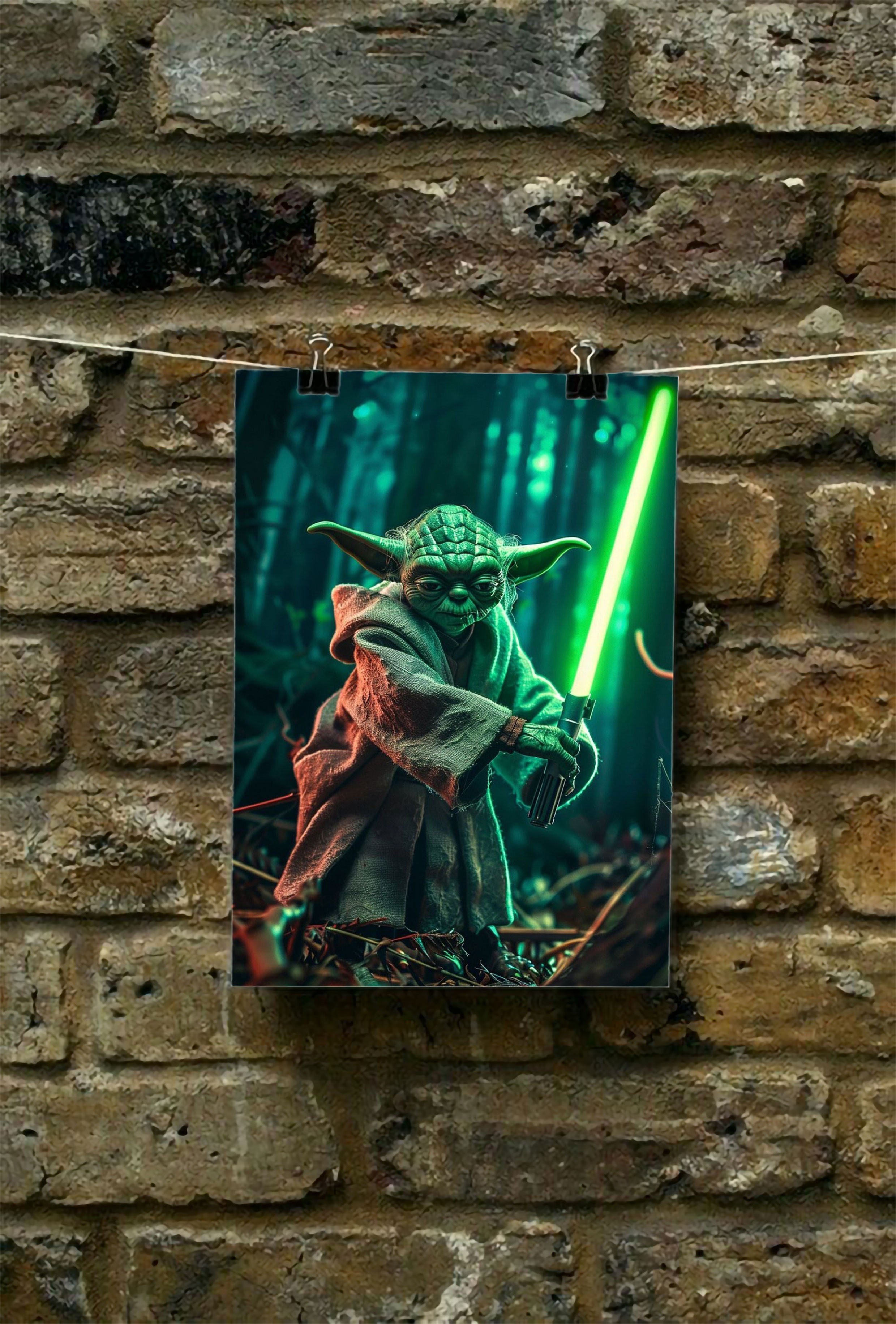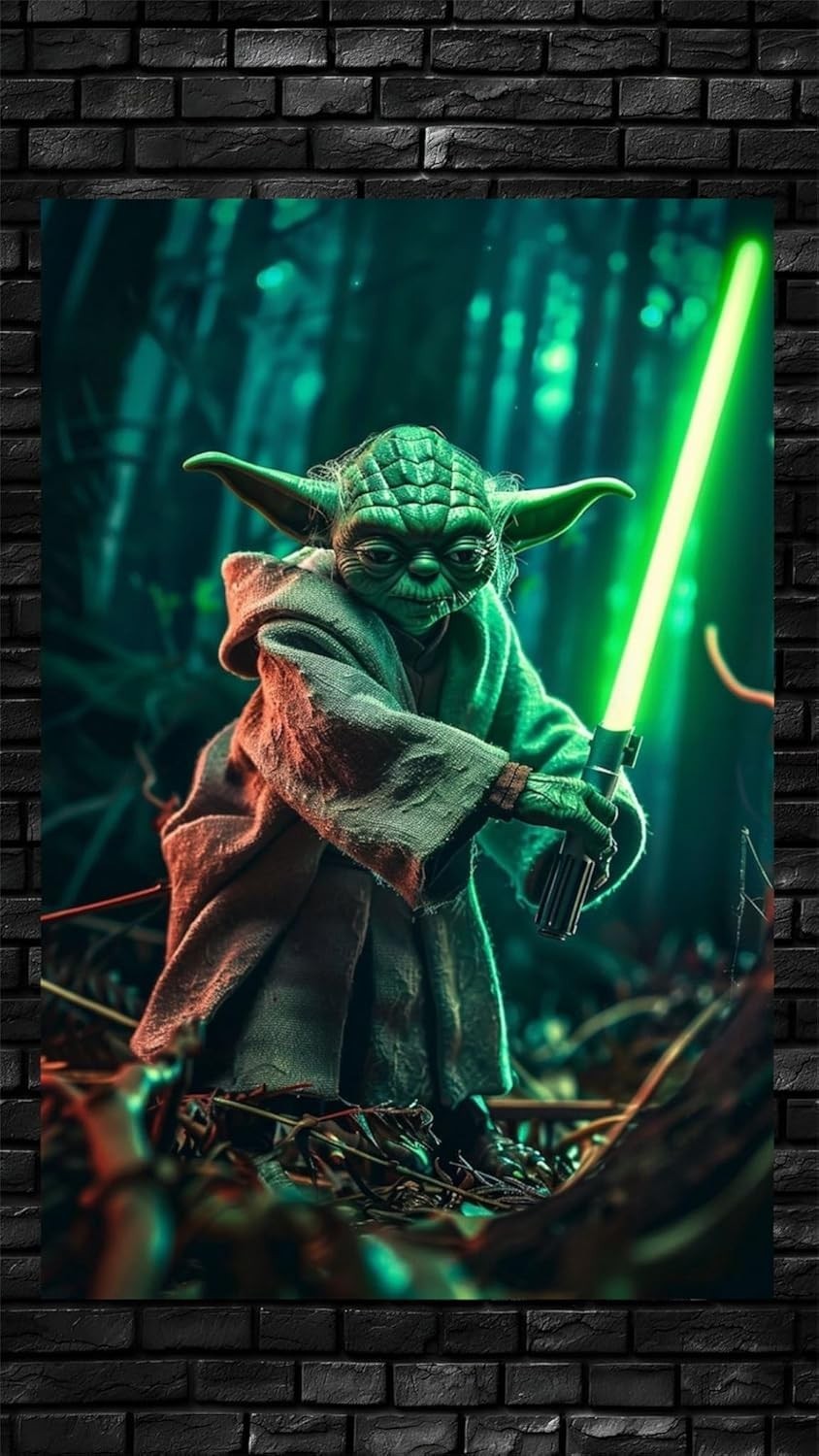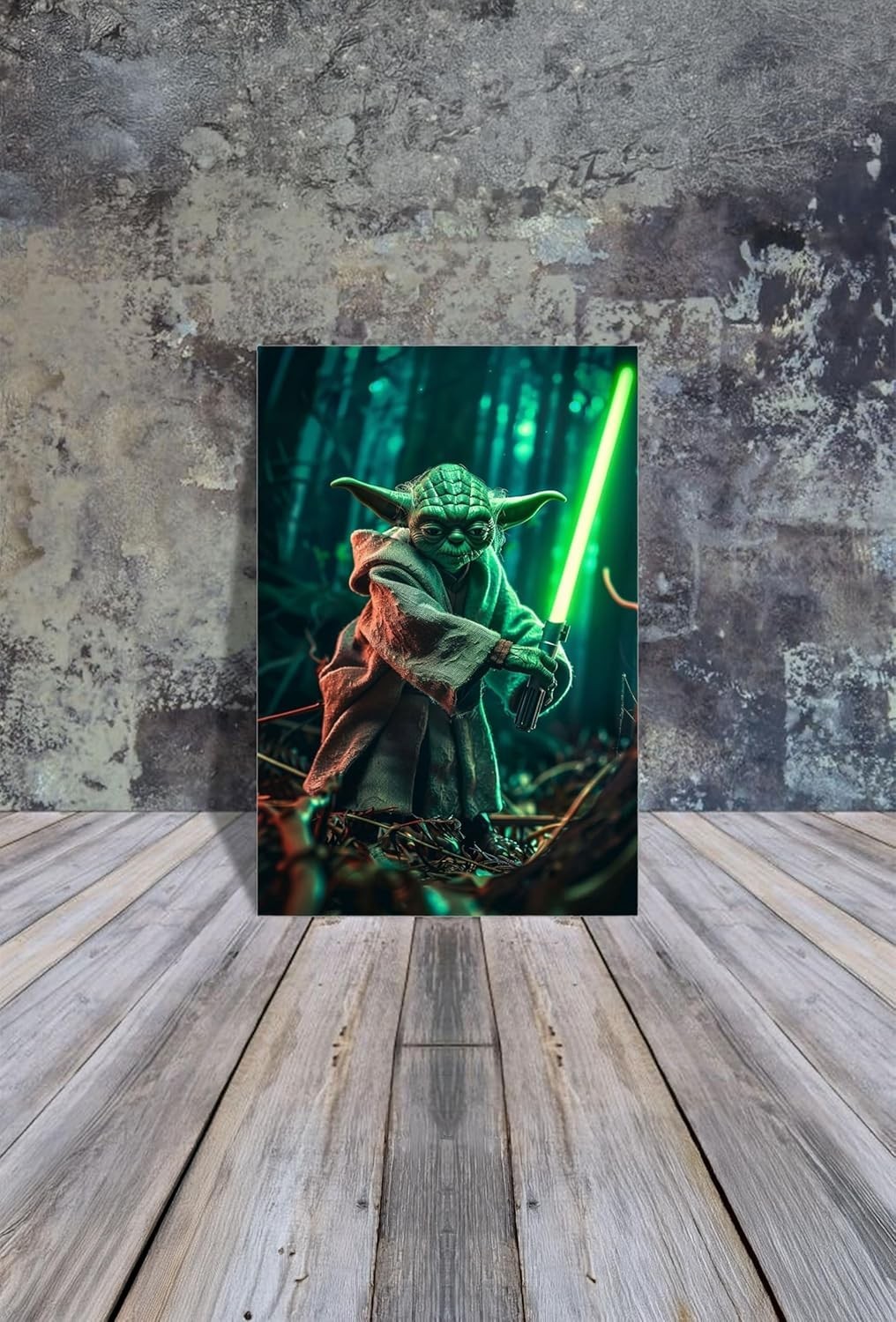 Yoda es uno de los maestros Jedi más sabios y poderosos del mundo Star Wars, con gran sabiduría lidera al consejo Jedi y es reconocido por su profundo conocimiento de la fuerza y su habilidad en el combate con sable de luz, se parte de su sabiduría y hazte con el Póster metálico y mas brillante de Star Wars