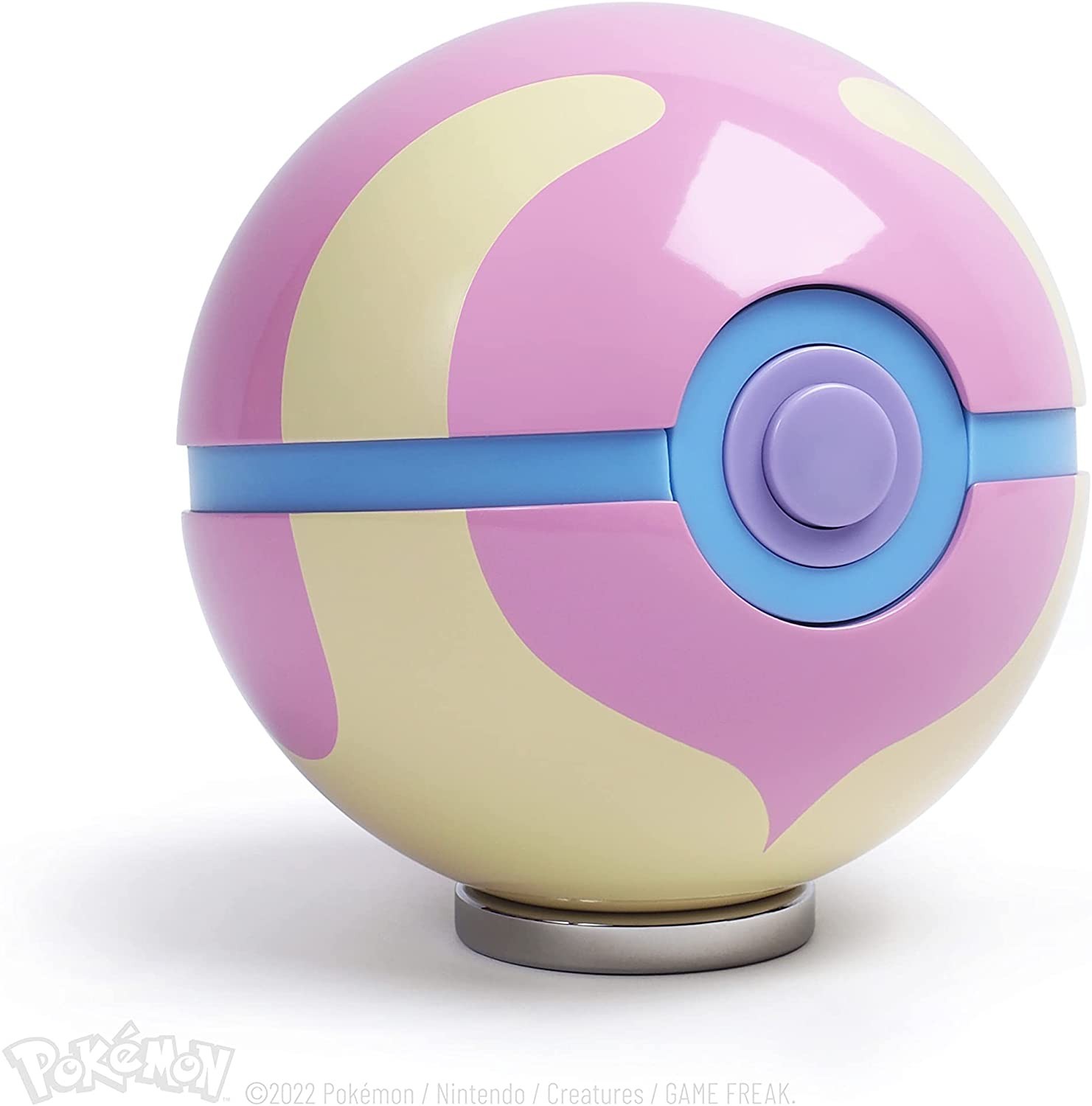 ¡Mira esto! Una sensacional réplica a escala 1:1 (tamaño real) de una Heal Ball, el tipo de pokeball de color rosa y azul que sirve para curar a los Pokémon. Viene en una impresionante caja que cada vez que abras brillará con luces multicolor, invitándote a que te acerques a admirar la bola. La misma caja tiene un sello holograma numerado y único para marcar tu Heal Ball de edición limitada. Es un objeto de licencia oficial de Pokémon. La bola tiene un diámetro aproximado de 8 cms, carcasa metálica con acabado pulido y nos la trae la marca The Wand Company, especializada en réplicas con un toque tecnológico que las hace saltar al siguiente nivel de realismo. El botón de la Heal Ball se ilumina gracias a su sensor de proximidad cada vez que acerques la mano. Funciona con 6 pilas AA que vienen incluidas. Viene también un anillo de acero inoxidable sobre el que podrás exponer la bola si quieres tenerla fuera de la caja. ¡Regala la réplica más realista y espectacular de una Heal Ball y queda como un auténtico campeón!