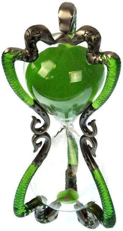 Una réplica espectacular que atrapará las miradas y la atención de todas tus visitas, sean o no fans de la saga de Harry Potter. Este reloj de arena del profesor Slughorn mide 25 cms de altura y está calibrado para durar aproximadamente una hora. Su arena de color verde intenso caerá a través de las bóvedas transparentes sujetas por una detallada estructura de aleación de estaño con esmalte exquisito. Puedes usar el reloj y girarlo para que su arena caiga, pero hazlo con cuidado, lo que The Noble Collection nos ofrece es una réplica decorativa y mágica pero frágil al mismo tiempo. Hazte con el tuyo o regálaselo a esa persona especial y descubre la razón de que sea una de las piezas más vendidas y regaladas de todo el universo mágico creado por la escritora JK Rowling.