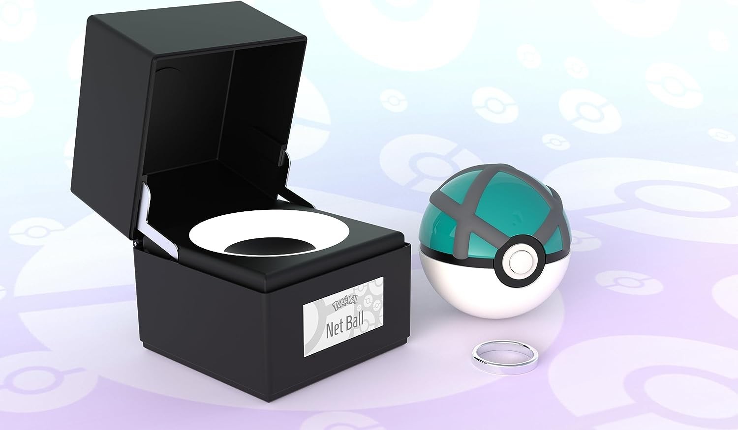 Si hay una cosa que tienen en común todos los fans de Pokémon es el deseo de ser poseedores de una Pokeball o, en este caso, una Net Ball. Estas herramientas que usan los entrenadores Pokémon para atrapar a las criaturas son icónicas y han pasado a ser parte de la cultura popular. La marca The Wand Comany ha creado esta espectacular Net Ball de colores turquesa y blanco que se ilumina al acercar tu mano. Está hecha con un recubrimiento de Die Cast metálico y tiene un acabado brillante, pulido y metalizado increíble. Es una réplica a escala 1:1, el tamaño que tendría una Net Ball en el mundo real, lo que son unos 8 cms de diámetro. Es un producto de licencia oficial sensible al tacto y a la proximidad, por eso el botón se iluminará cuando te acerques. Viene dentro de una lujosa caja para exposición que tiene luces multicolor que brillarán cada vez que abras la caja. La caja mide unos 9 x 10 x 10 cms y tiene una etiqueta holograma en su parte inferior con un identificador y numeración única. También incluye un pequeño aro de acero inoxidable para que puedas colocar la Net Ball en exposición fuera de la caja. Funciona con 3 pilas AA y 3 pilas AAA incluidas. Colecciona esta magnífica pieza de lujo y colócala junto a las otras Pokeball de la colección.