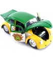 ¡Móntate a bordo del escarabajo Volkswagen Drag Beetle de 1959 de las Tortugas Ninja! Gracias a Jada ahora puedes hacerte con la réplica de este simpático vehículo ideal para navegar los estrechos callejones de Nueva York. Está hecho de PVC y metal Die Cast que le da un toque extra de brillo y robustez. Incluye una figura de Michelangelo de 7 cms que muestra al héroe disfrutando de una deliciosa porción de pizza, su comida favorita. Viene en una caja temática con amplia ventana de exposición en dos de sus lados. Una de las réplicas más espectaculares que podrás encontrar del escarabajo de las TMNT con licencia oficial Nickelodeon. Mide unos 17 cms de largo y está hecha a escala 1/24.