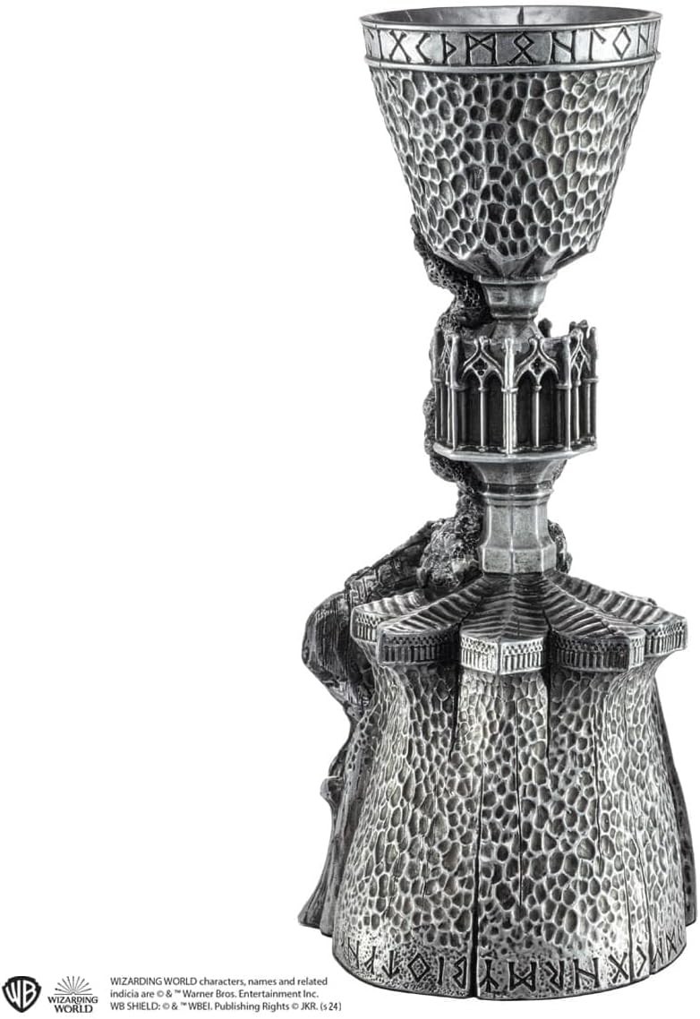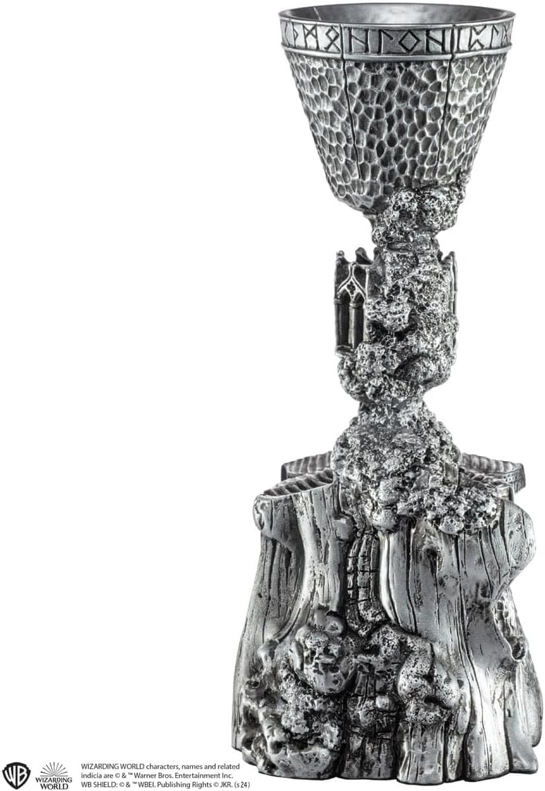 El mítico y mágico Cáliz de Fuego, la pieza e historia mágica que elegía a los rivales del Torneo de los Tres Magos, ahora puede reposar tras los muros de tu fortaleza. Esta réplica hecha de resina y moldeada con un cuidado excelso, es una de las maravillas que nos trae The Noble Collection desde el universo mágico de Harry Potter, creado por J.K. Rowling. Las runas del filo, la rugosidad de la superficie del cáliz, y los detalles de los relieves arquitectónicos de su base, te dejarán tan impactado que necesitarás un hechizo para volver en ti. Mide unos 19 cms.