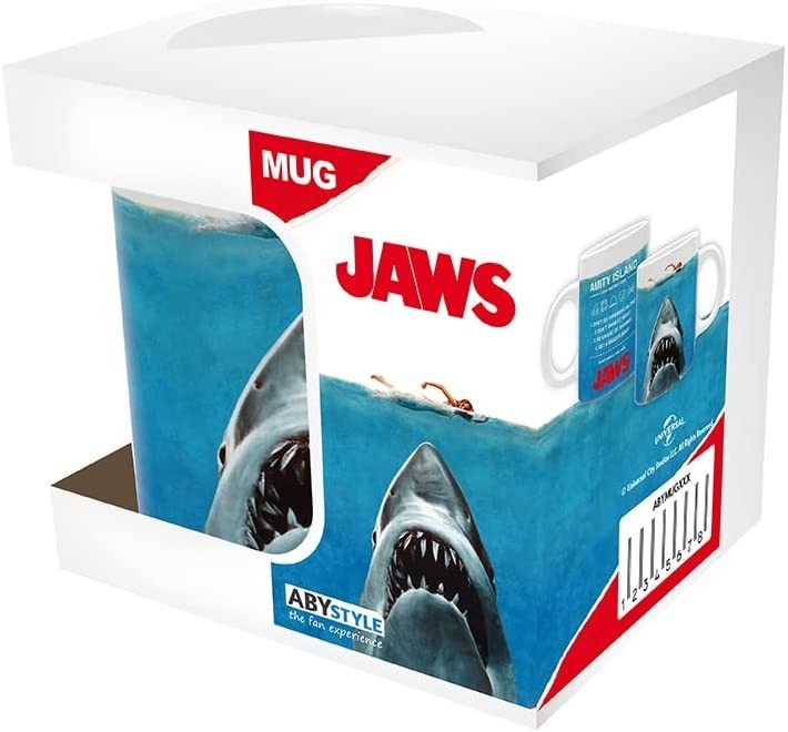 De Abystyle nos llega una taza de cerámica que es icónica y original a partes iguales. Con una capacidad de 320 mls, podrás beber tu bebida favorita con esta taza de "Jaws (Tiburón)", la película con la que Steven Spielberg inició la moda y el negocio de los 'blockbusters' veraniegos. Además de ser un peliculón, "Tiburón" ha inspirado cientos de originales regalos como esta taza que tiene una ilustración del póster de la película y en la parte posterior tiene las instrucciones de baño de la isla de Amity, lugar en el que se desarrolla la película. Viene en una caja temática y podrás usar la taza tanto en el lavavajillas como en el microondas.