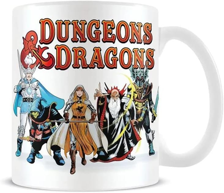 El legendario juego de rol Dungeons & Dragons, creado por Wizards of the Coast, es sin duda el que mayor número de fans tiene y que más horas de diversión ha regalado a sus seguidores. Este icónico juego ha pasado de generación en generación, dando a cada una la oportunidad de jugar como Dungeon Masters, hechiceros, guerreros, trasgos… Ahora, gracias a la prestigiosa marca Pyramid International, puedes llevarte a casa una mágica taza de cerámica con ilustraciones retro de los personajes de D&D. Es de cerámica de gran calidad y tiene una capacidad de 315 mls. Además, es apta para microondas y lavavajillas. Súmate a la fiebre por Dungeons & Dragons y coge energía cada mañana con la que será tu nueva taza favorita. Viene en una caja temática y es un producto oficial de D&D.