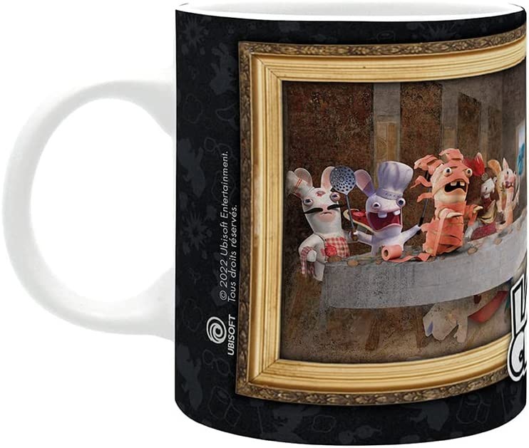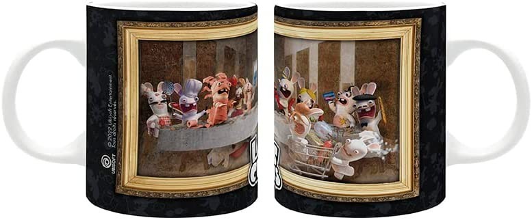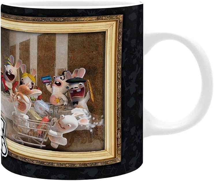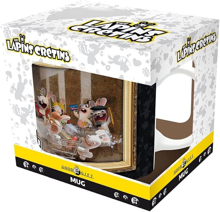 Pocos villanos más alocados hay en el mundo del videojuego como los Raving Rabbids, conocidos en Francia como Lapins Cretins. Aparecieron por primera vez en un videojuego de conocido personaje Rayman para enfrentarse a él. La taza que ha creado The Good Gift tiene una capacidad de 320 mls y está hecha de cerámica de gran calidad. Viene en una caja temática y es apta para usar en lavavajillas y microondas. En su superficie, la taza tiene una ilustración a todo color de un grupo de estos insidiosos conejitos.