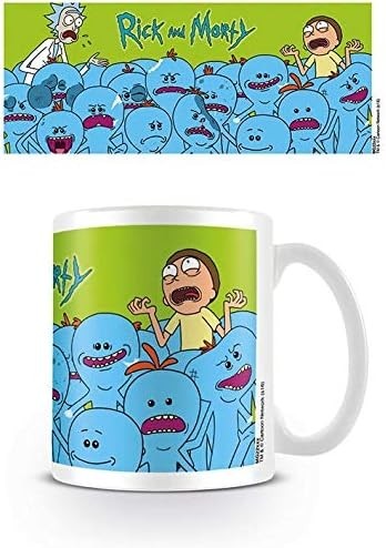 Los peculiares Mr. Meeseeks son los protagonistas de esta taza oficial de Adult Swim y Rick y Morty. Está hecha de cerámica interdimensional y tiene una capacidad aproximada de 320 mls. Los Meeseeks agonizan, se ríen y disfrutan de su corta y azul vida en la superficie de esta taza exclusiva que será una adición genial a la cocina de cualquier fan de la mítica serie de animación.
