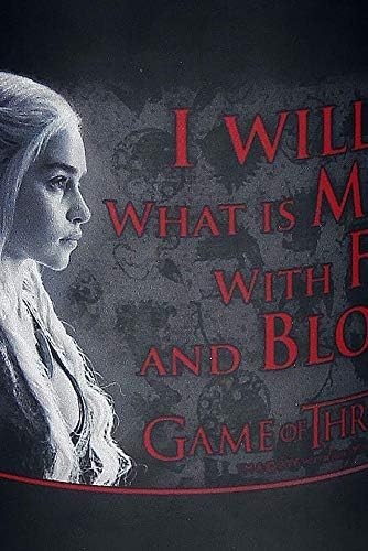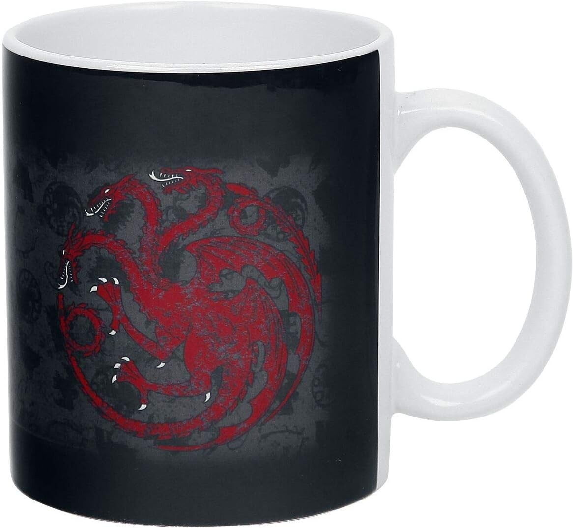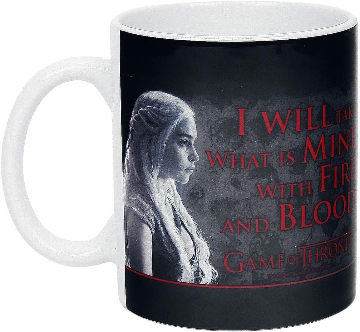 El escudo de la casa Targaryen y la imponente frase “I will take what is mine with fire and blood”, junto a una foto de Daenerys, decoran esta taza de licencia oficial de Juego de Tronos que ha creado la marca Abystyle. Está hecha de cerámica y tiene una capacidad de 320 mls. Es apta para lavavajillas y microondas.