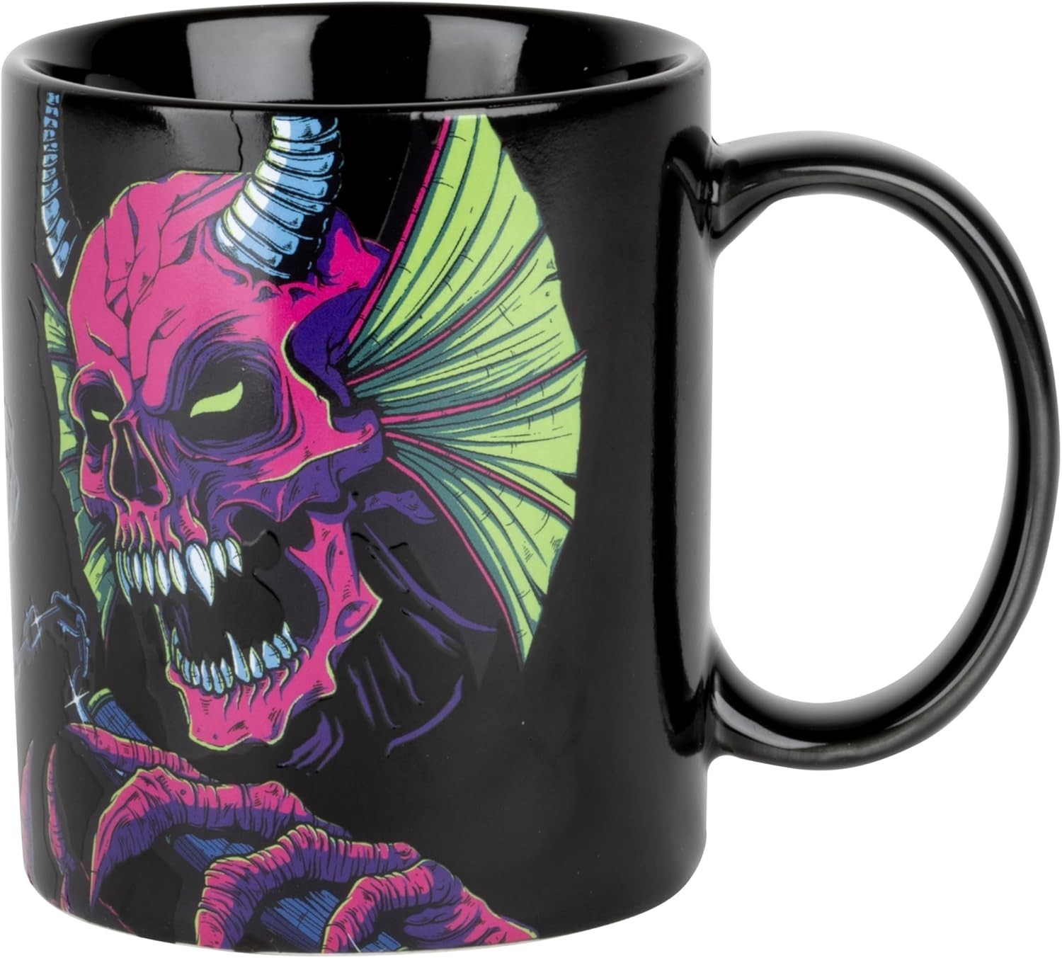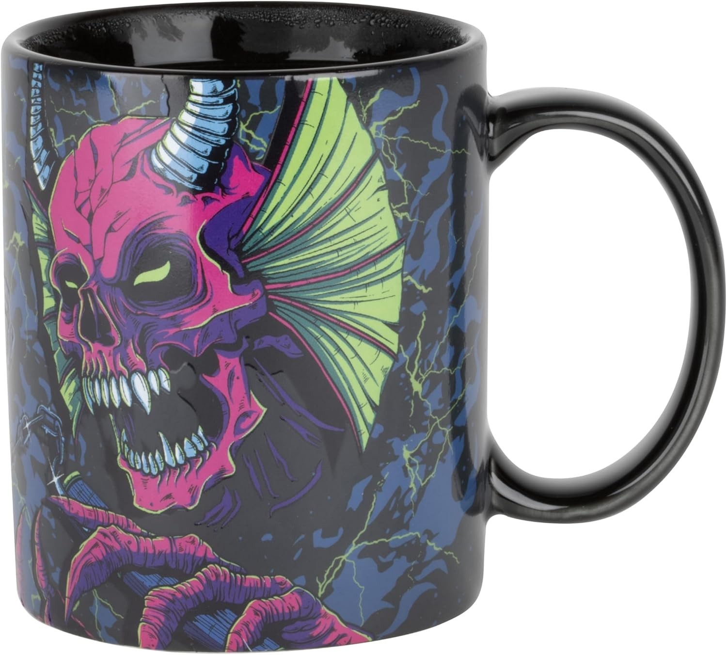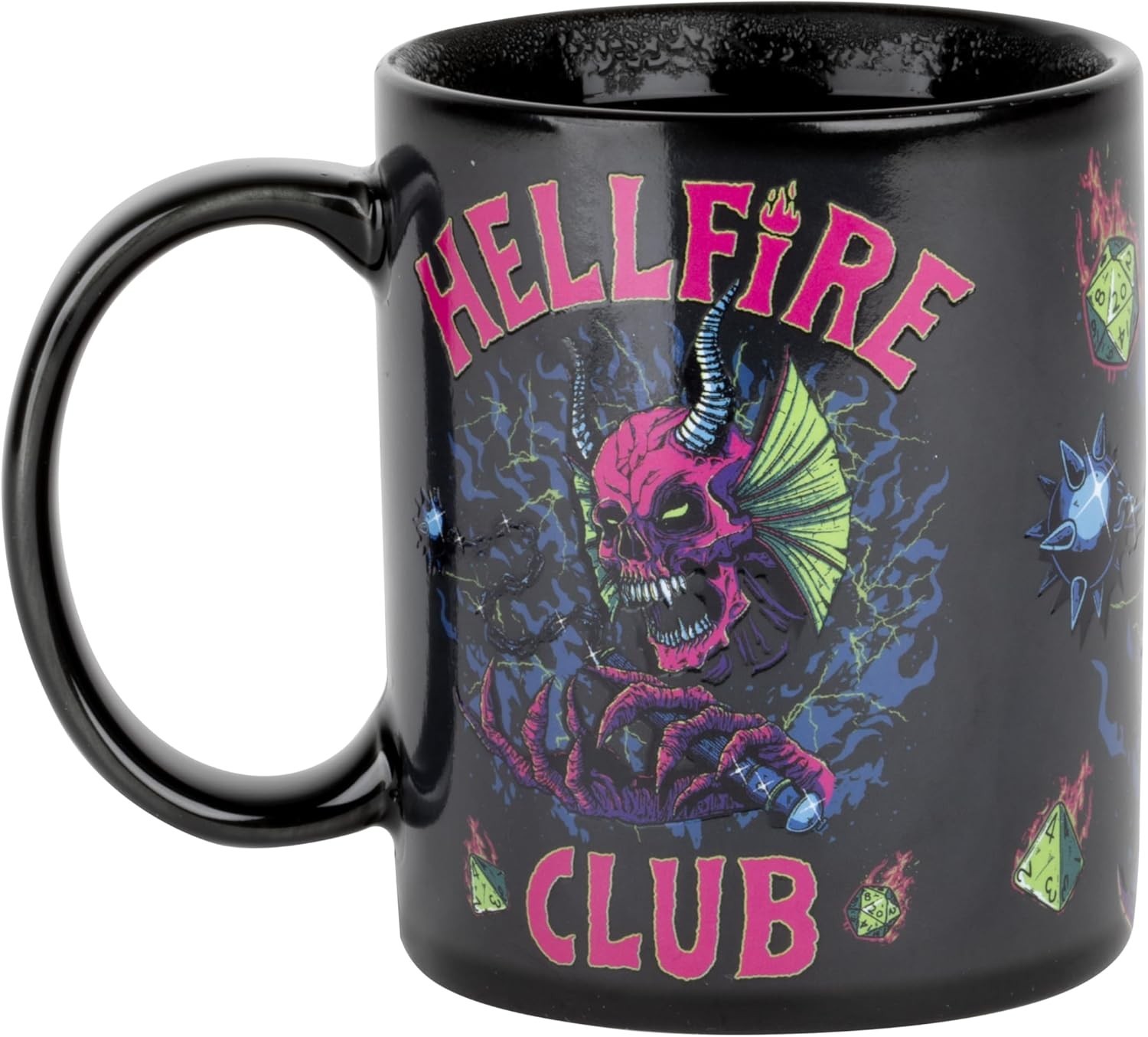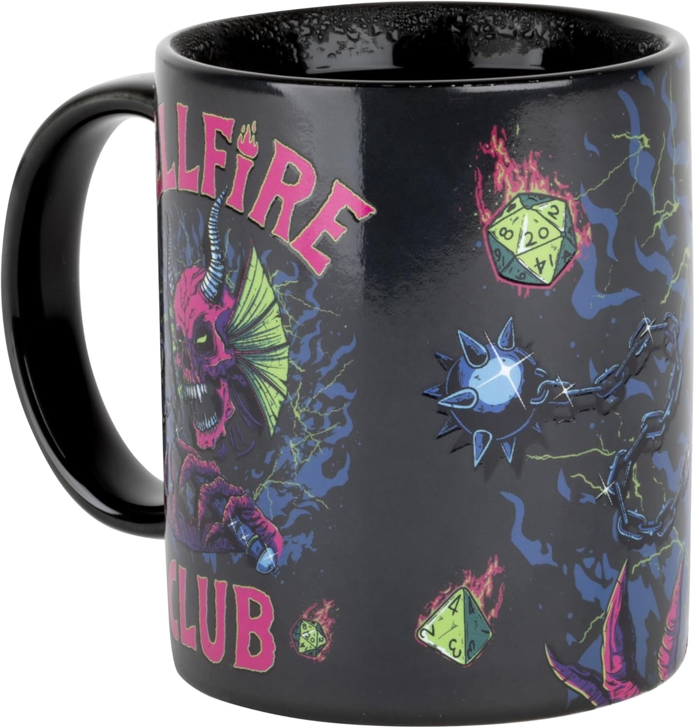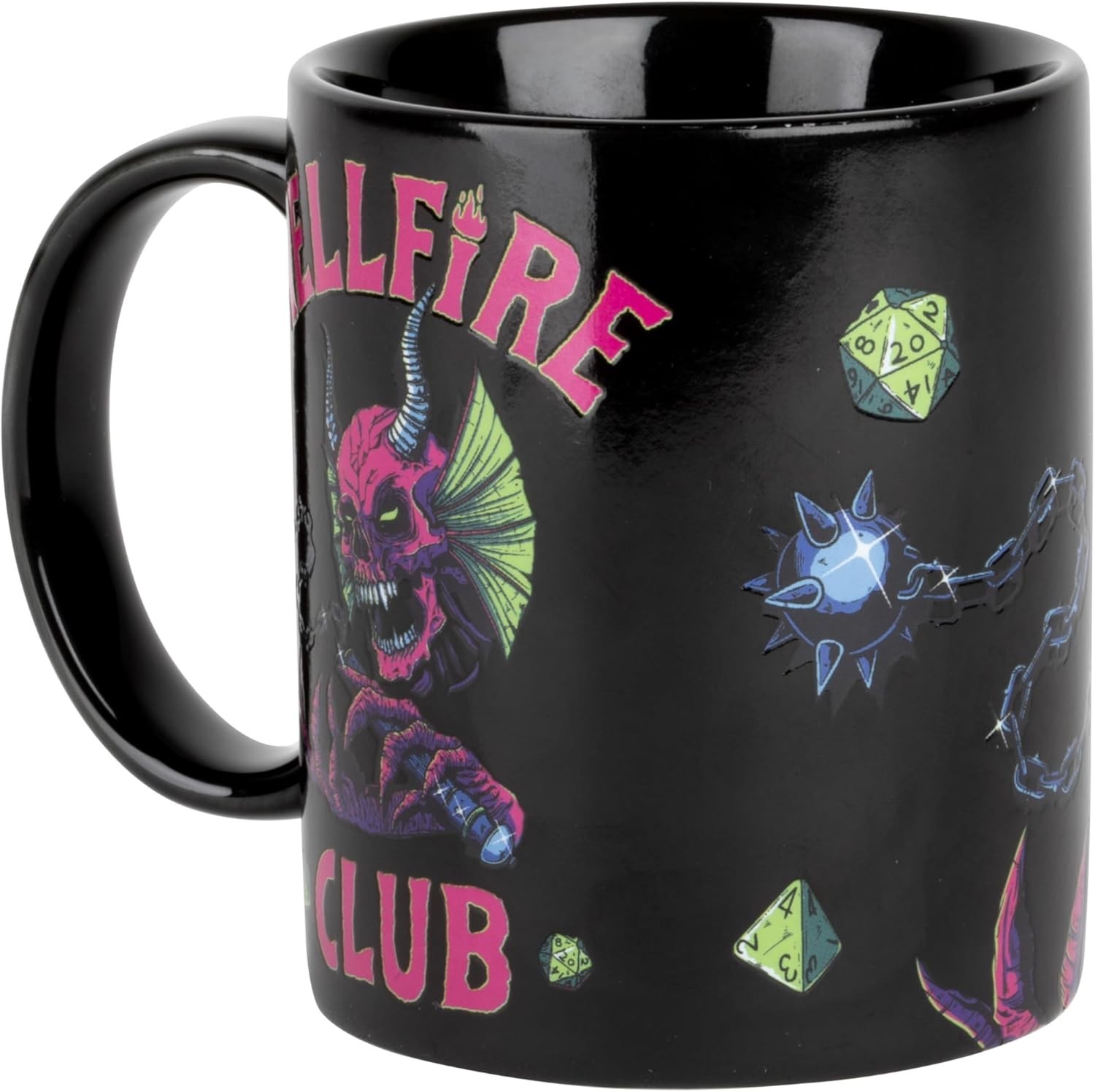 ¡Sumérgete en el misterio y la nostalgia de Stranger Things con esta espectacular taza de cerámica de 330 mls inspirada en el icónico Club Hellfire! Diseñada por Konix, esta taza no es solo un recipiente, es un tributo al universo de Hawkins. En su superficie, destaca una calavera con alas y cuernos, un símbolo perfecto de la rebeldía y el espíritu único del club. Lo más emocionante es su efecto térmico: al verter líquido caliente, la taza cambia de color, revelando detalles ocultos que transforman la experiencia de disfrutar tu bebida favorita en un momento mágico. Ideal para fans de lo sobrenatural y el Dungeons & Dragons, pero ¡ojo!, no es apta para lavavajillas ni microondas, preservando así su acabado único. Ya sea café, té o chocolate, esta taza eleva cualquier bebida al nivel de otra dimensión. ¡Perfecta para amantes de lo retro y lo misterioso!