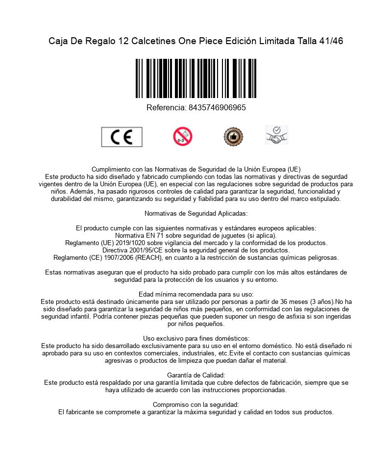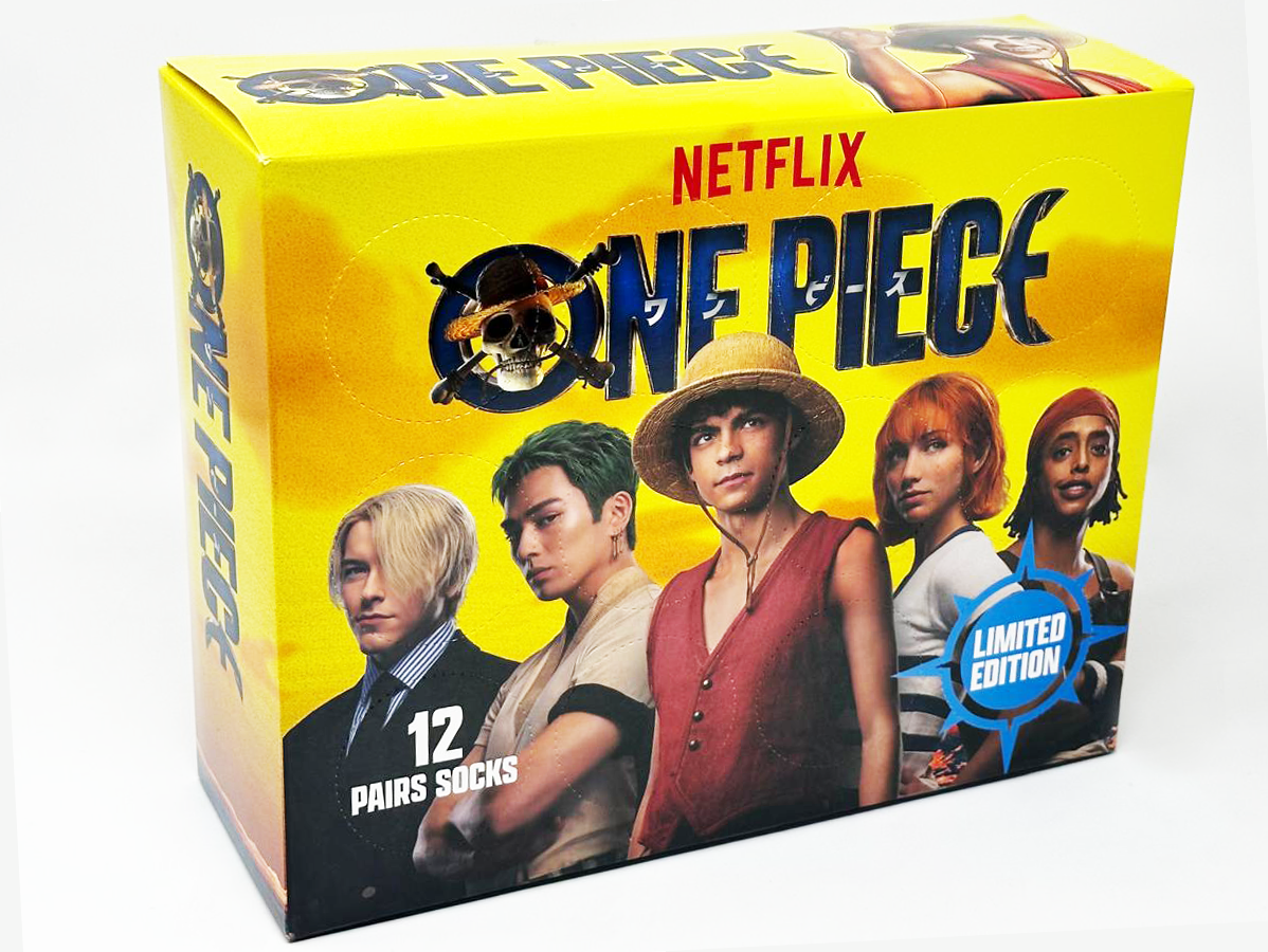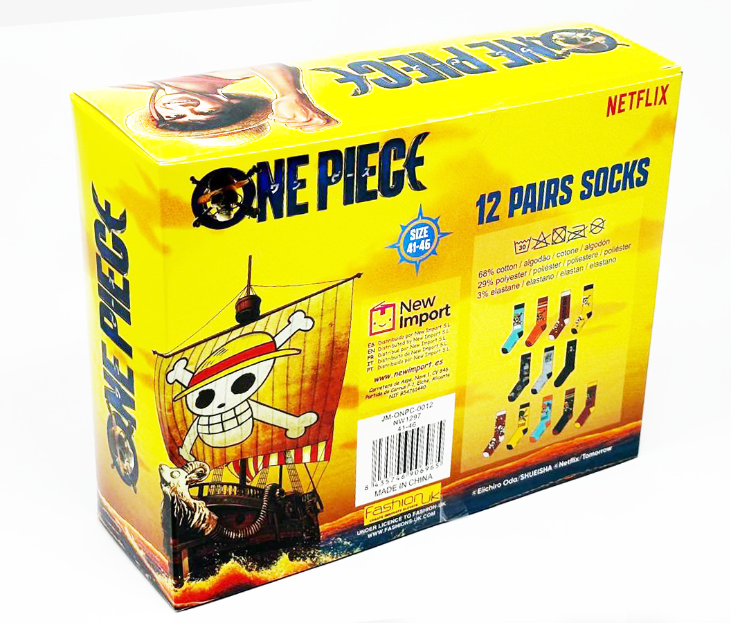 ¡Surca los mares de la comodidad con esta caja de regalo edición limitada de 12 pares de calcetines de la serie de acción real de One Piece! Cada par es una joya única, inspirada en los símbolos de los personajes más épicos de la serie de Netflix. Hechos de poliéster suave y resistente, estos calcetines son perfectos para acompañarte en tu propia búsqueda del tesoro (o en la siesta). Con estilos diferentes, podrás sentirte parte de la tripulación de los Sombrero de Paja cada vez que mires tus pies. Son ideales para los que no se conforman con un solo diseño y quieren un par para cada lado de su personalidad pirata. ¡Arma tus pies con estos calcetines y grita “Yo seré el Rey de los Piratas” cada vez que te los pongas! Son de la talla 41/46 y han sido creados por Fashion UK, maestros absolutos en el textil de la mayor calidad.