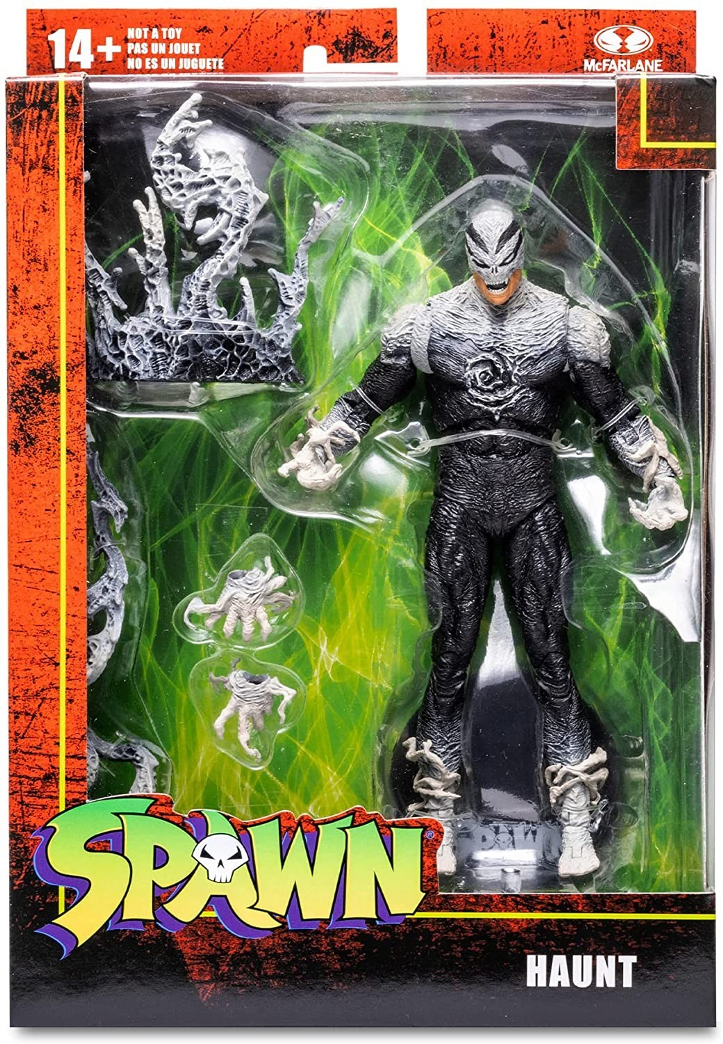Todd McFarlane es el creador de la saga Spawn y de (nada menos) la marca McFarlane Toys. Y es a esa saga y a esa marca a la que pertenece la figura articulada que ves aquí, la de Haunt. Pero este personaje no fue creado originalmente como un secundario de Spawn, sino que tenía su propia serie de cómics co-creada por Robert Kirkman y McFarlane. El sacerdote Daniel Kilgore y el fantasma de su hermano asesinado se unían formando al justiciero llamado Haunt, que tenía un atractivo diseño en blanco y negro con las señas de identidad habituales de los personajes creados por el bueno de Todd. La figura que te traemos hoy pertenece a la línea de Spawn y viene en una colorida caja de la serie que incluye la figura articulada junto a dos manos intercambiables, dos efectos del poder de Haunt y una peana para exposición. Mide 18 cms y está hecha de PVC... sin ectoplasmas.