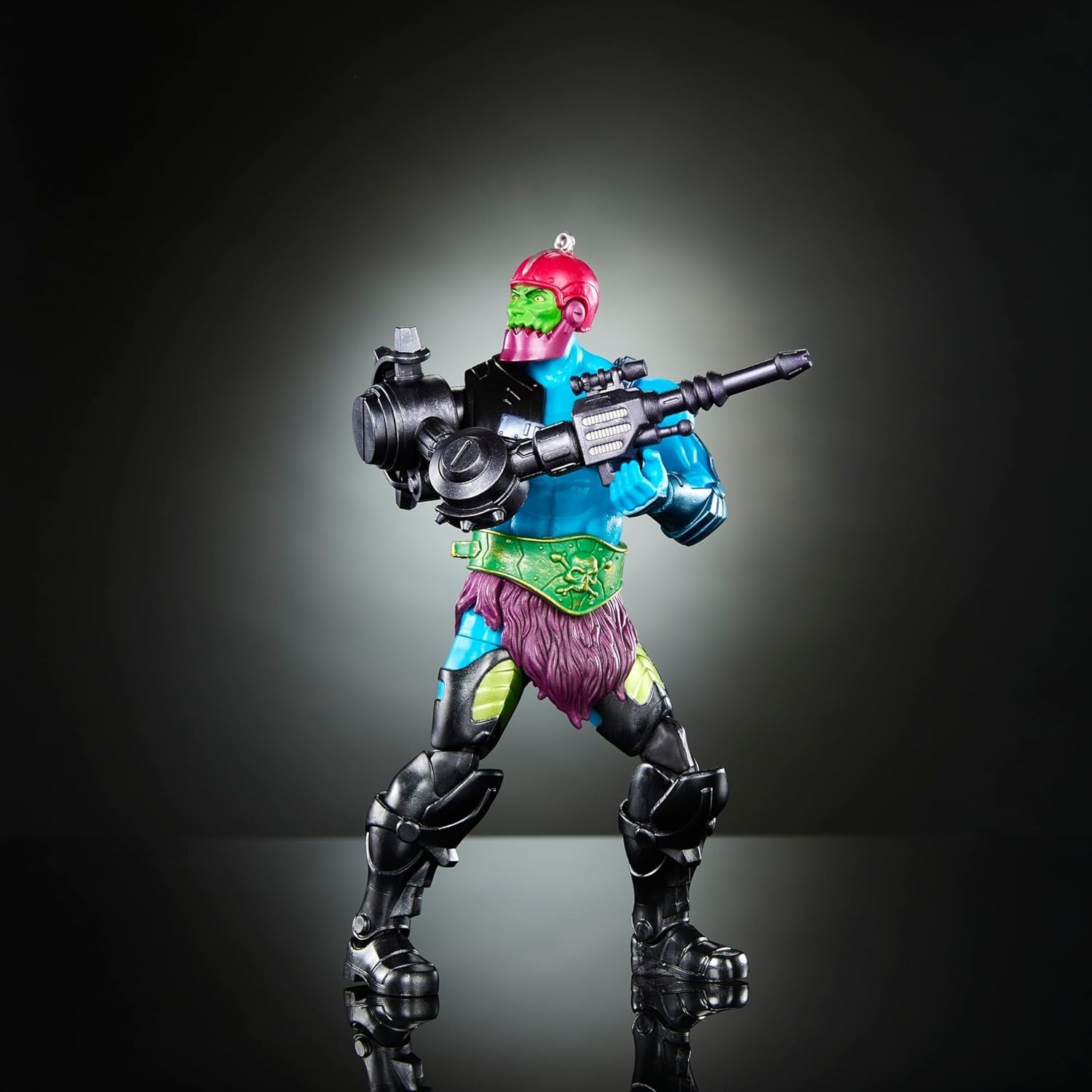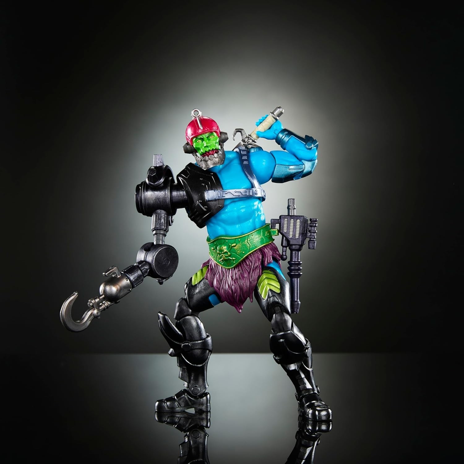 El peligroso Trap Jaw es uno de los personajes más icónicos de la saga de Masters of the Universe. La línea a la que pertenece esta figura es la Masterverse New Eternia. Trap Jaw mide 18 cms, está hecho de PVC e incluye accesorios como gancho y tres armas distintas adicionales de color negro. Disfruta de esta figura totalmente articulada que viene dentro de una colorida caja de la famosa saga de Mattel decorada con ilustraciones.