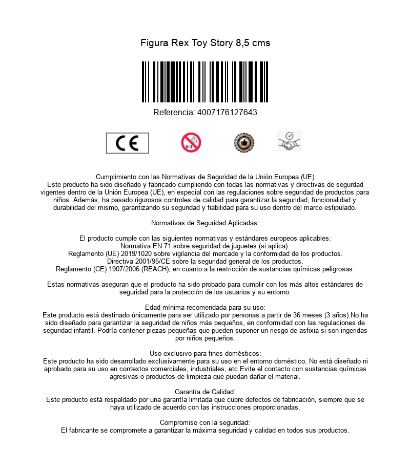 El asustadizo Rex es un tiranosaurio que forma parte del grupo principal de juguetes del cuarto de Andy. Llévate a casa a este divertido dinosaurio pintado a mano de 8,5 cms de altura que tuvo su primera aparición en la película "Toy Story" de Disney Pixar.
