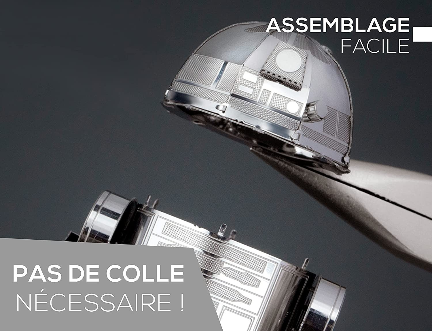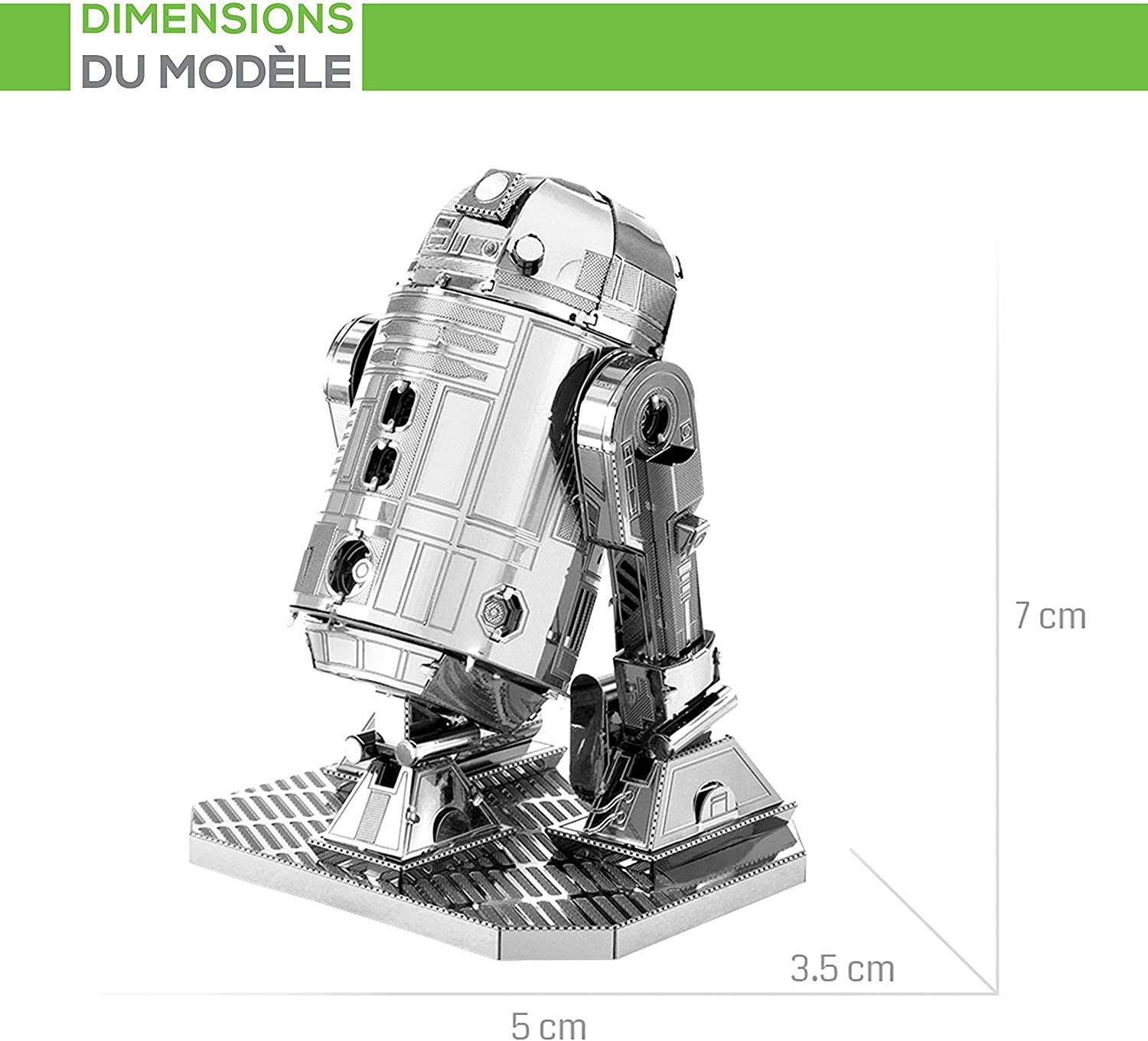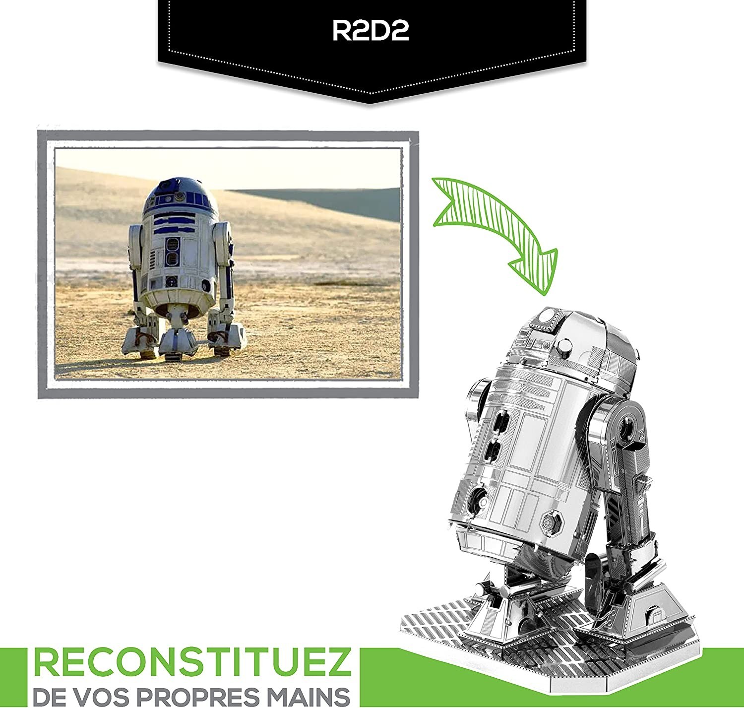 El inseparable compañero de C3PO puede ser parte de tu colección con esta original figura en 3D hecha de acero. La línea Metal Earth, de la marca Fascinations te ofrece a personajes y vehículos de Star Wars para que los ensambles sin pegamento siguiendo las instrucciones que acompañan a las dos láminas de acero. Hazte con el androide astromecánico y ponle junto a tus vehículos de la saga galáctica para que estén bien cuidadas. Mide unos 6 x 4 cms y tiene un acabado cromado super atractivo.