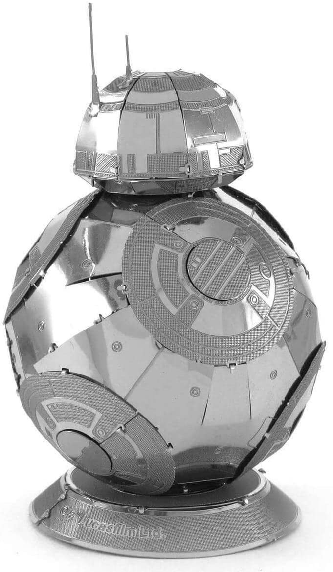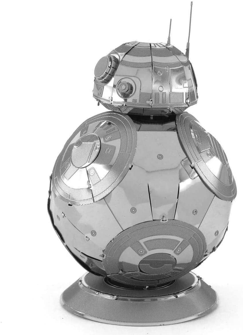 Una original maqueta 3D de BB-8 con un atractivo acabado cromado. Ensambla a tu androide sin necesidad de pegamento con las dos láminas de acero que vienen mientras sigues las instrucciones ilustradas. La línea Metal Earth de la marca Fascinations te ofrece los vehículos, naves y personajes más icónicos del universo cinematográfico creado por George Lucas con un tamaño, material, y acabados de lo más original que quedarán de lujo en tu colección.