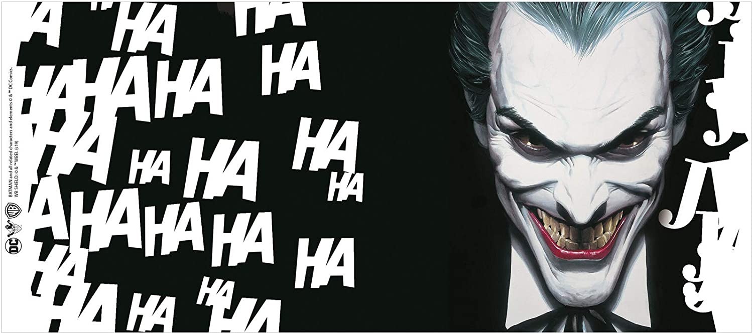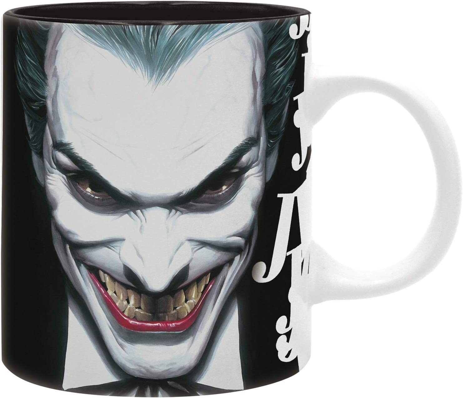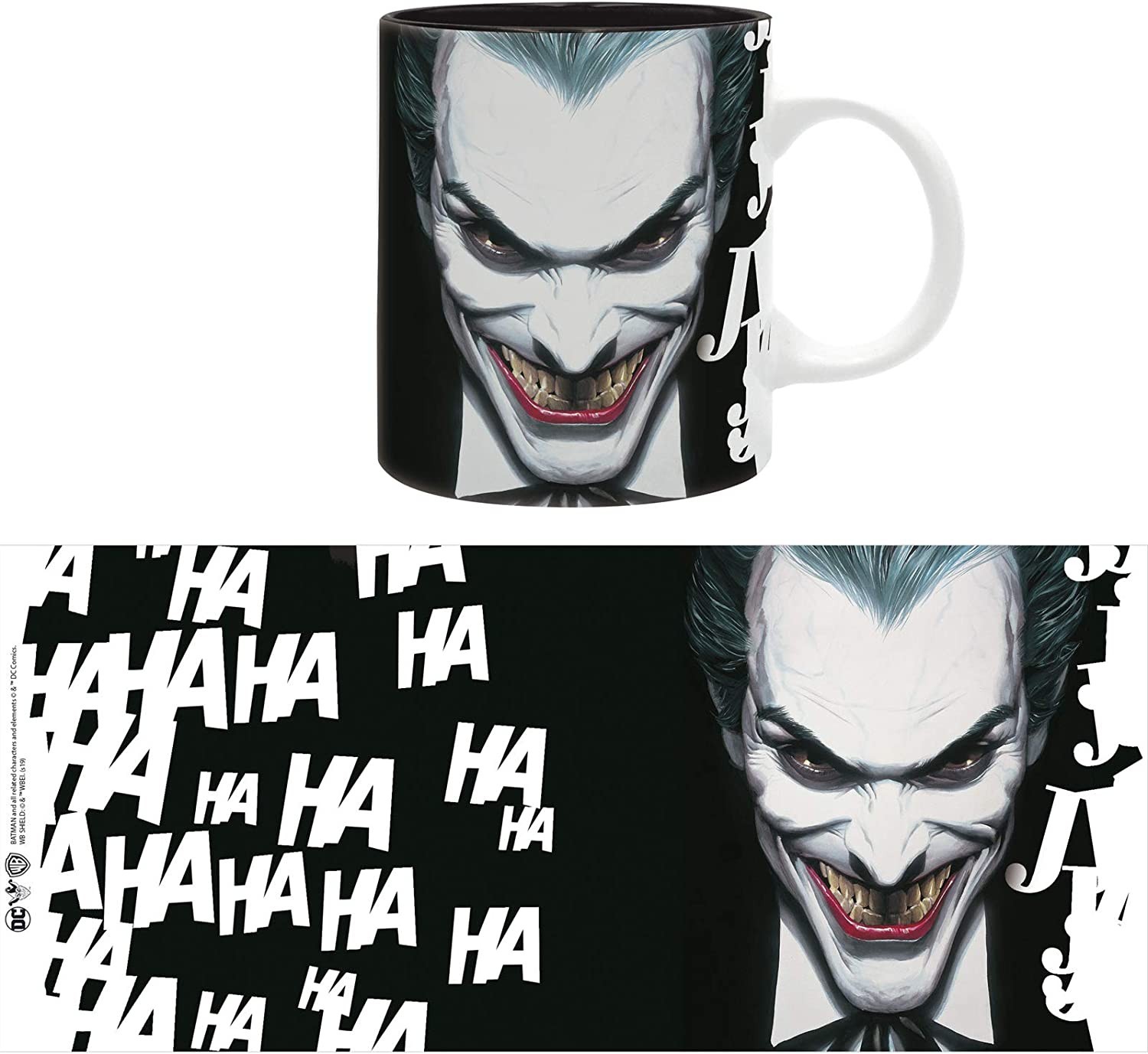 Abystyle nos trae dos iconos juntos en un utilísimo artículo: una taza. El Joker ilustrado por el artista Álex Ross es uno de los más impresionantes de las viñetas de DC cómics. El acabado realista de este Joker decora el exterior de la taza junto a una serie de ‘HAHAHAHA’S’, la icónica risa de este peligroso villano de Batman. Tiene una capacidad de unos 320 mls y está hecha de cerámica de gran calidad. Viene en una caja temática de cartón con ventana. Planea como acabar con Batman mientras desayunas acompañado de una de las versiones del Joker más realistas y artísticamente impresionantes que existen. Es apta para meter al lavavajillas y al microondas.