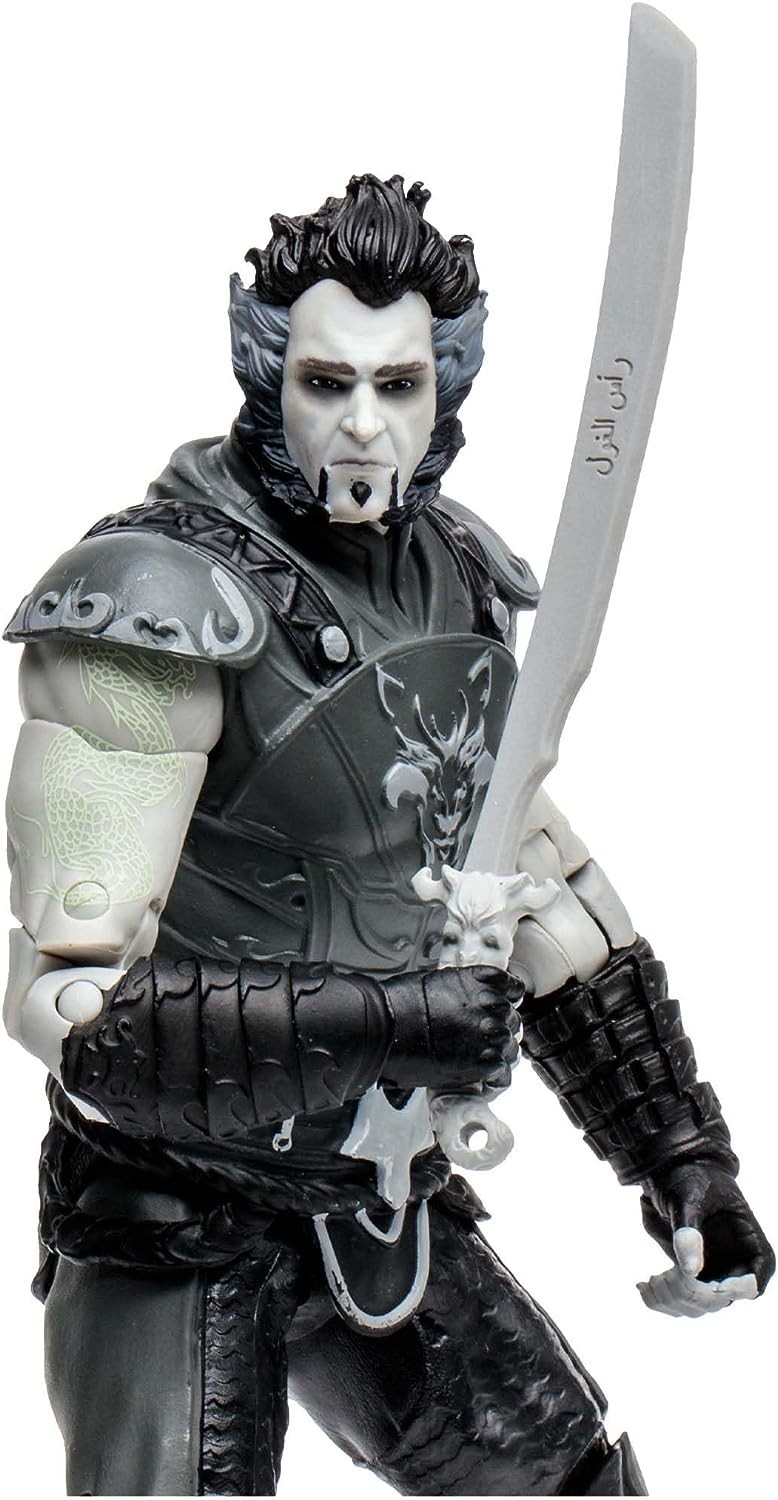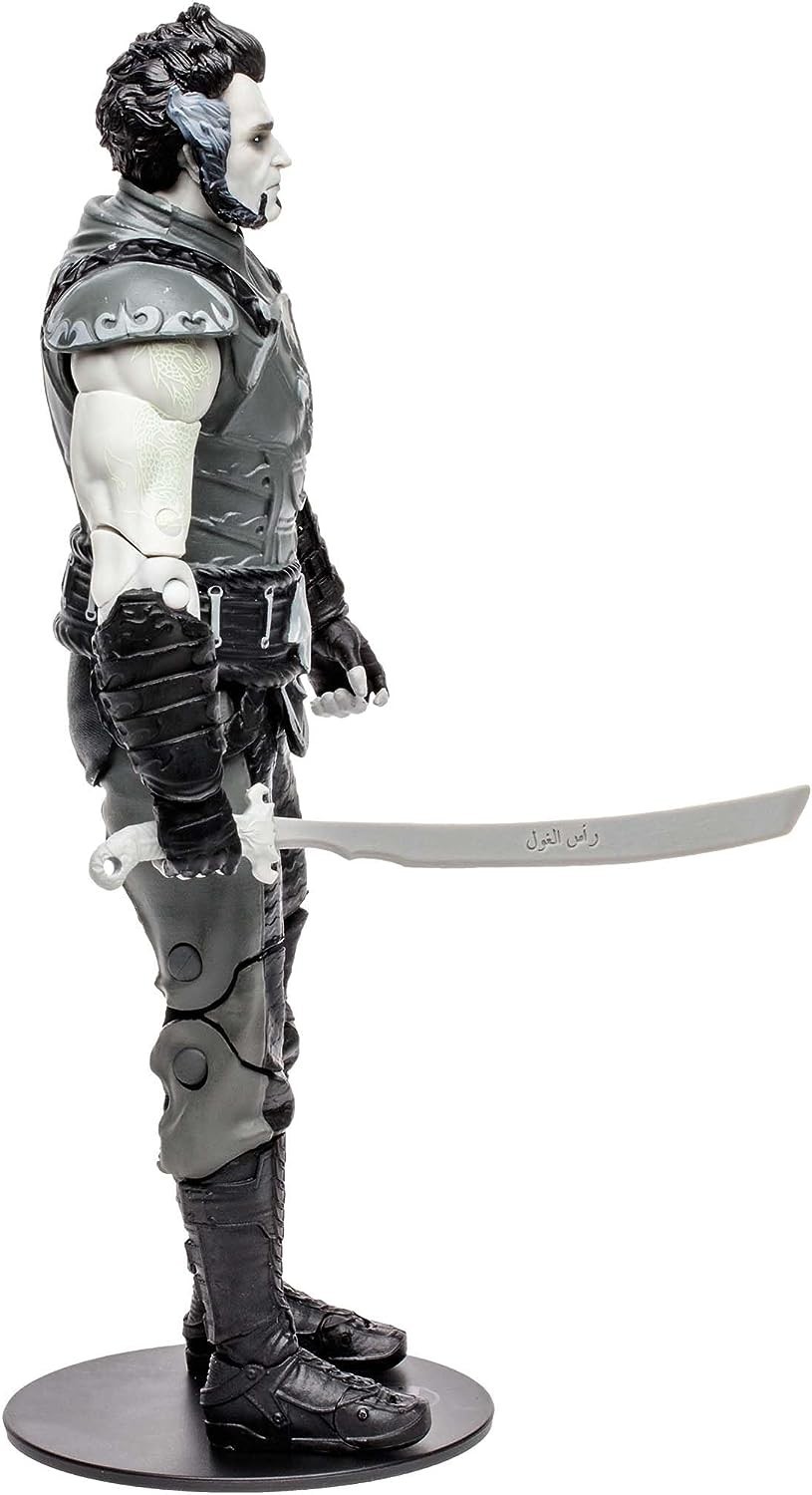 En remotos escondites es donde Ra’s Al Ghul se entrenó para convertirse en uno de los villanos más temibles y que en mayores apuros ha puesto a Batman a lo largo de la historia del héroe en los cómics. McFarlane Toys, bajo su sello Gold Label, te trae al archienemigo del murciélago en forma de figura articulada de 18 cms hecha de PVC de gran calidad. Pertenece a la línea DC Multiverse y está basado en la versión de Ra’s que aparece en el videojuego Batman: Arkham City. Viene con accesorios como una espada, tarjeta coleccionable del personaje, peana de exposición y una pieza para construir a tu propio Solomon Grundy gracias al extra Collect To Build. Junta todas las piezas de la colección y tendrás a Solomon en tu alineación de villanos del cruzado de la capa.