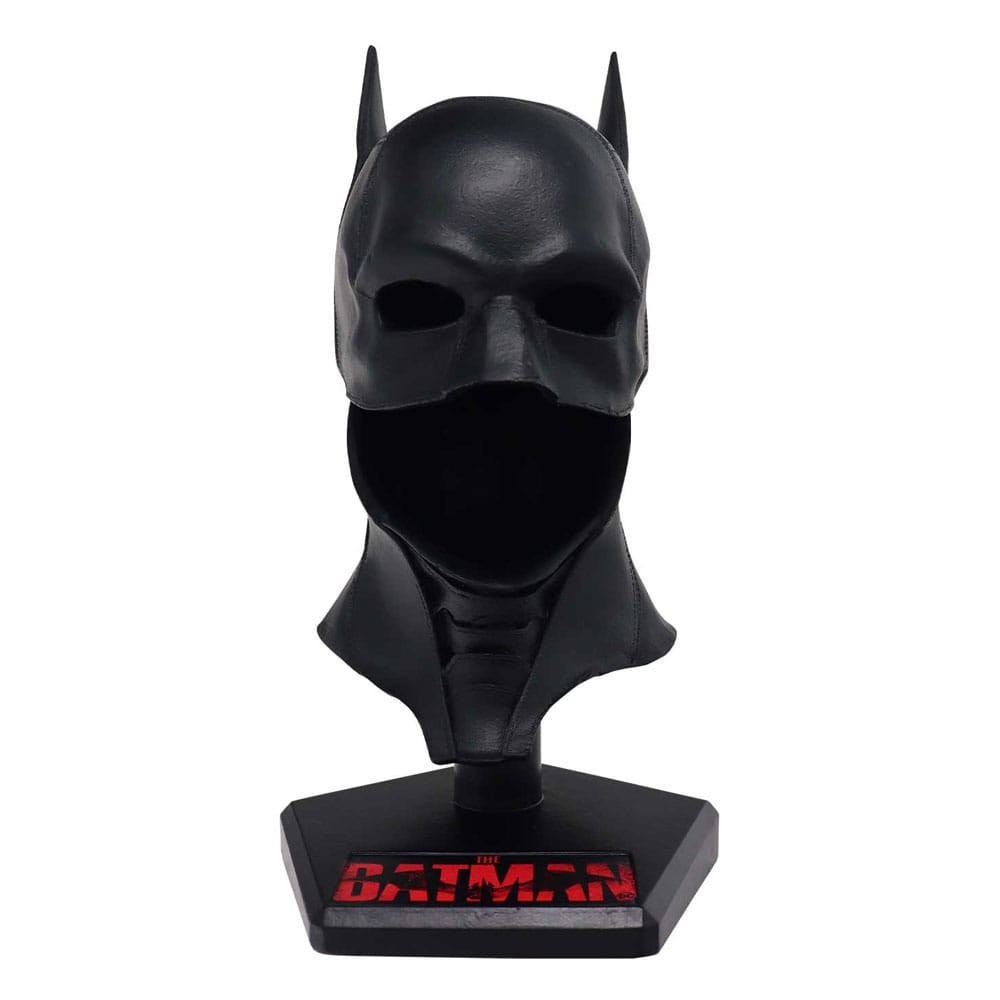 Alucina con esta réplica de la capucha del Batman de Robert Pattinson en “The Batman”, la película de 2022 dirigida por Matt Reeves. Tiene licencia oficial DC y forma parte de una edición limitada a 2022 unidades. Viene con una peana con el logo de la película que inició un nuevo camino para el Caballero Oscuro. Ha sido escaneada directamente de las capuchas originales usadas en la película. Viene en una elegante caja rígida de colores rojo y negro.